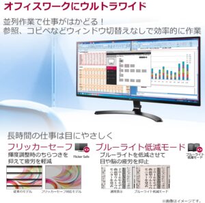 ウルトラワイドモニターは複数画面を同時に開いて見られるのが強みです。オフィスワークの効率を高めてくれますね。