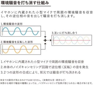 内蔵された小型マイクが周囲の騒音を打ち消してくれます。