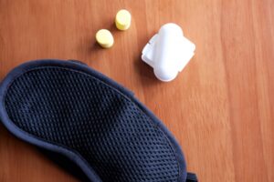 家族がいて明かりを消しづらい場合でも「アイマスク」で光を遮ると良いですね。「耳栓」も加えるとさらに睡眠は深くなりぐっすり眠りやすくなるでしょう。