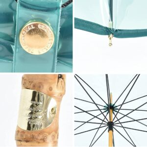 丈夫で厚手のビニール素材と竹を使い、ハンドル部分にはブランドロゴも入った高級なデザインです。